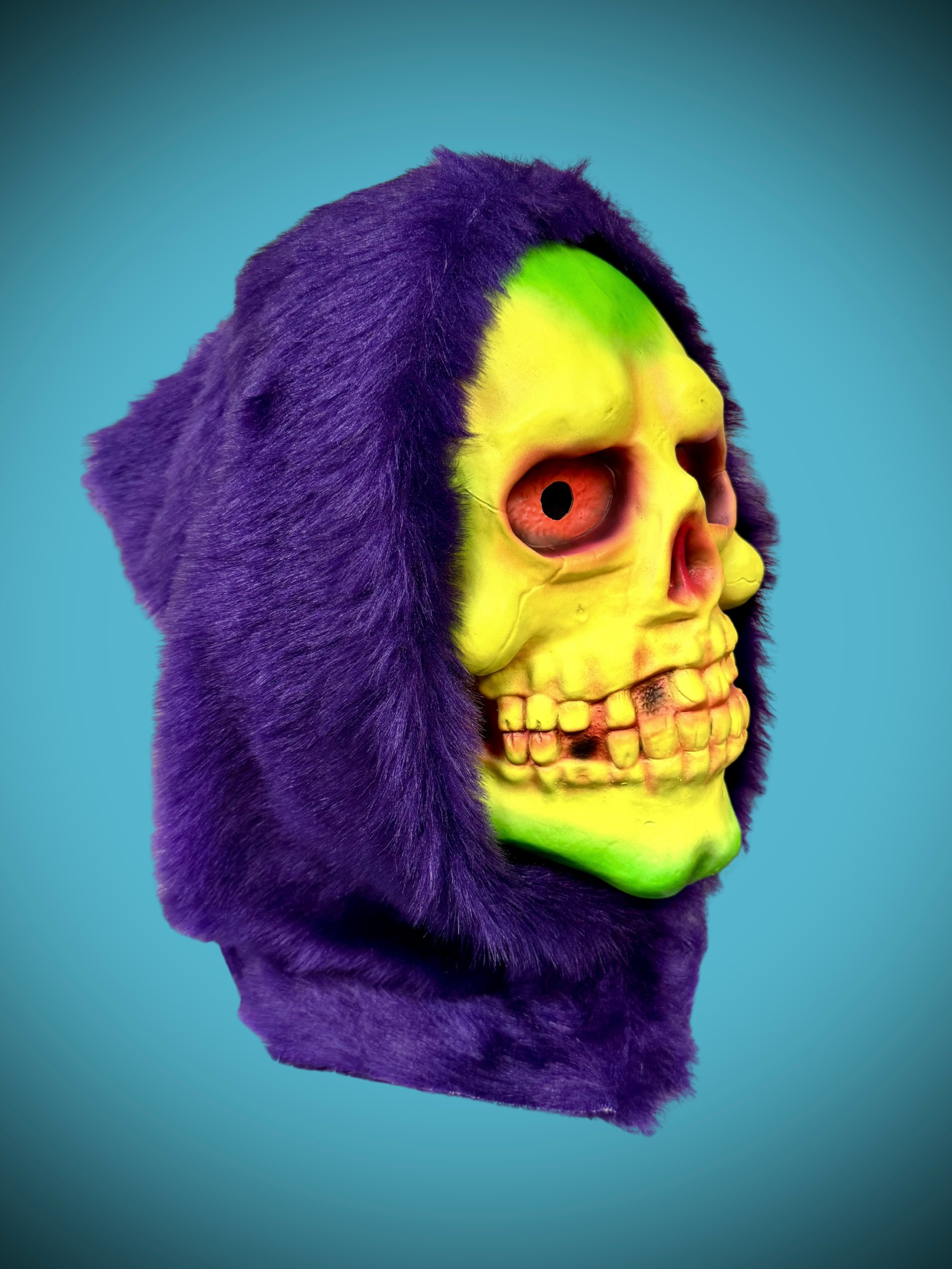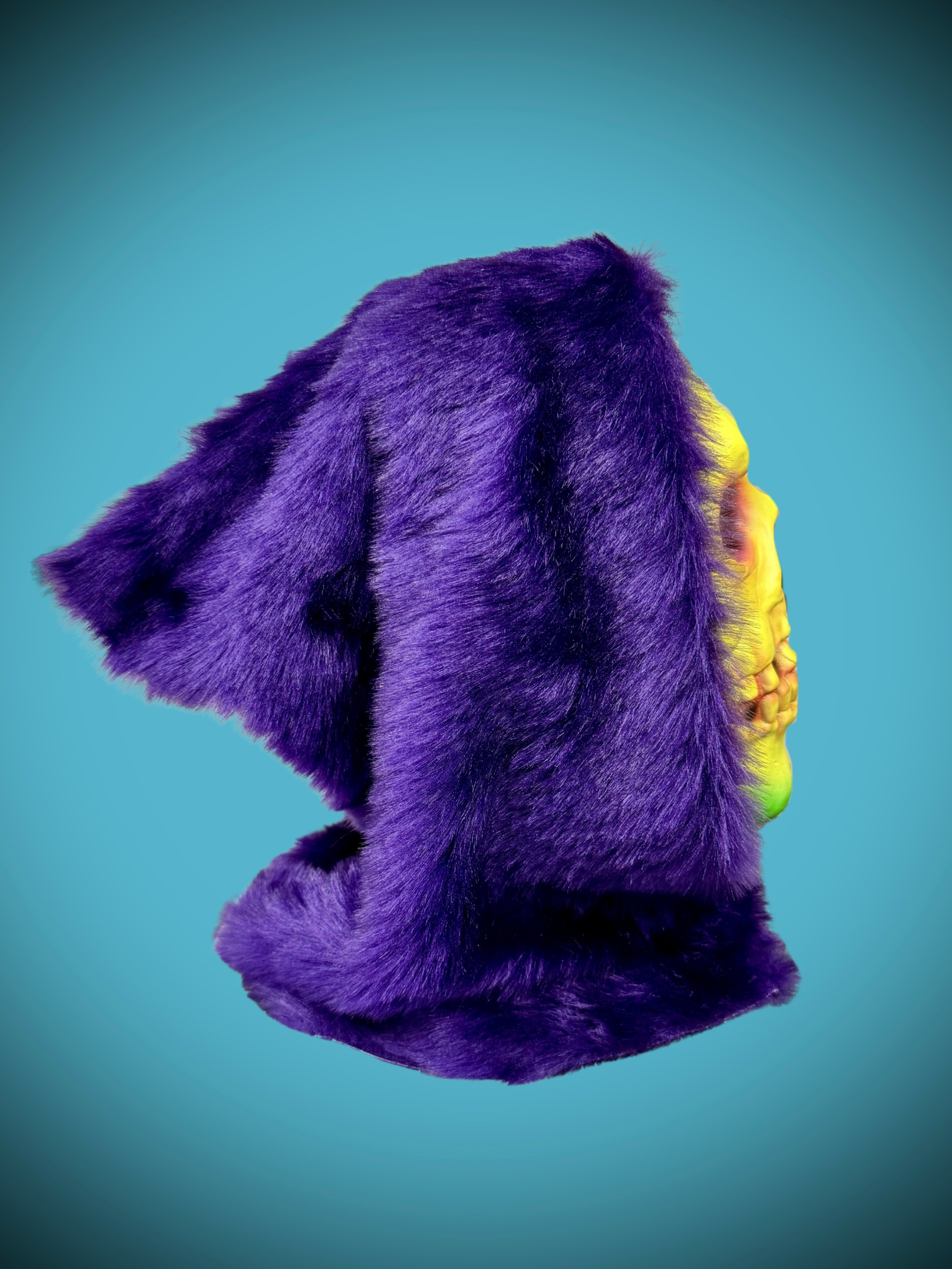 Purple Fun fur hood was custom made for this mask and really ties the look together.