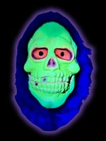 The vibrant fluorescent paint job was inspired by the original Mattel action figures. If you have a black light crank that sucker up, and watch him glow!!!