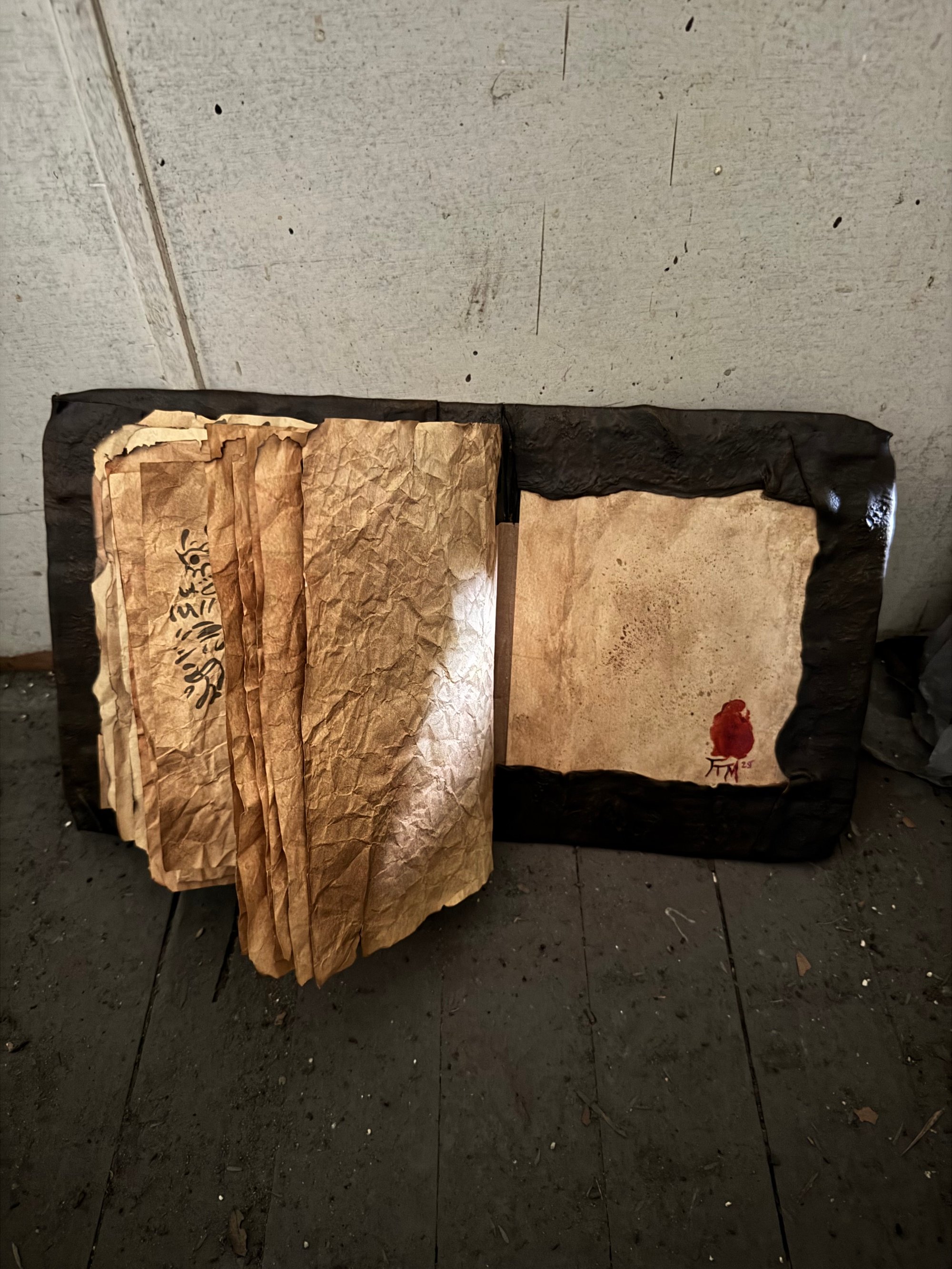 The book “skin” is cast in latex from my own sculpt, and painted up in high quality latex paints and sealed.