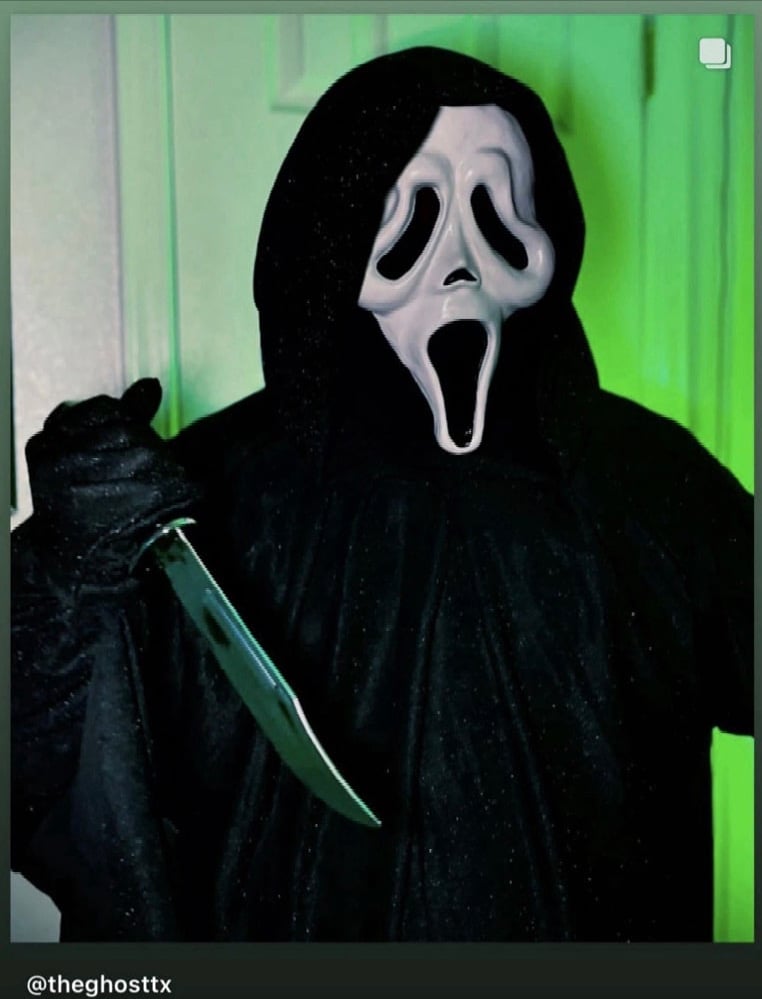 This is my original sculpt, created to resemble the rare “KNB” Ghostface mask seen in only a few scenes of the original Scream film.