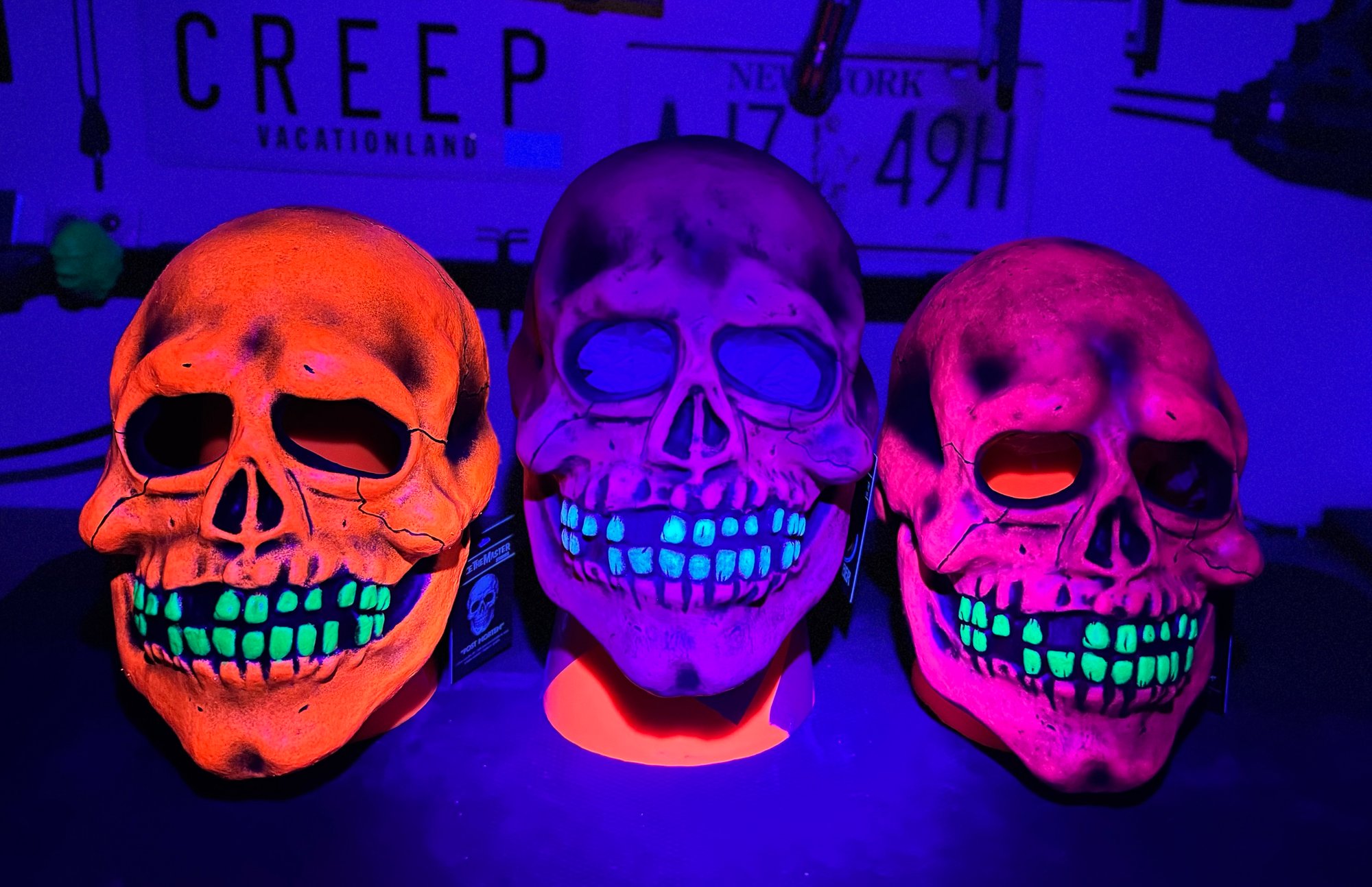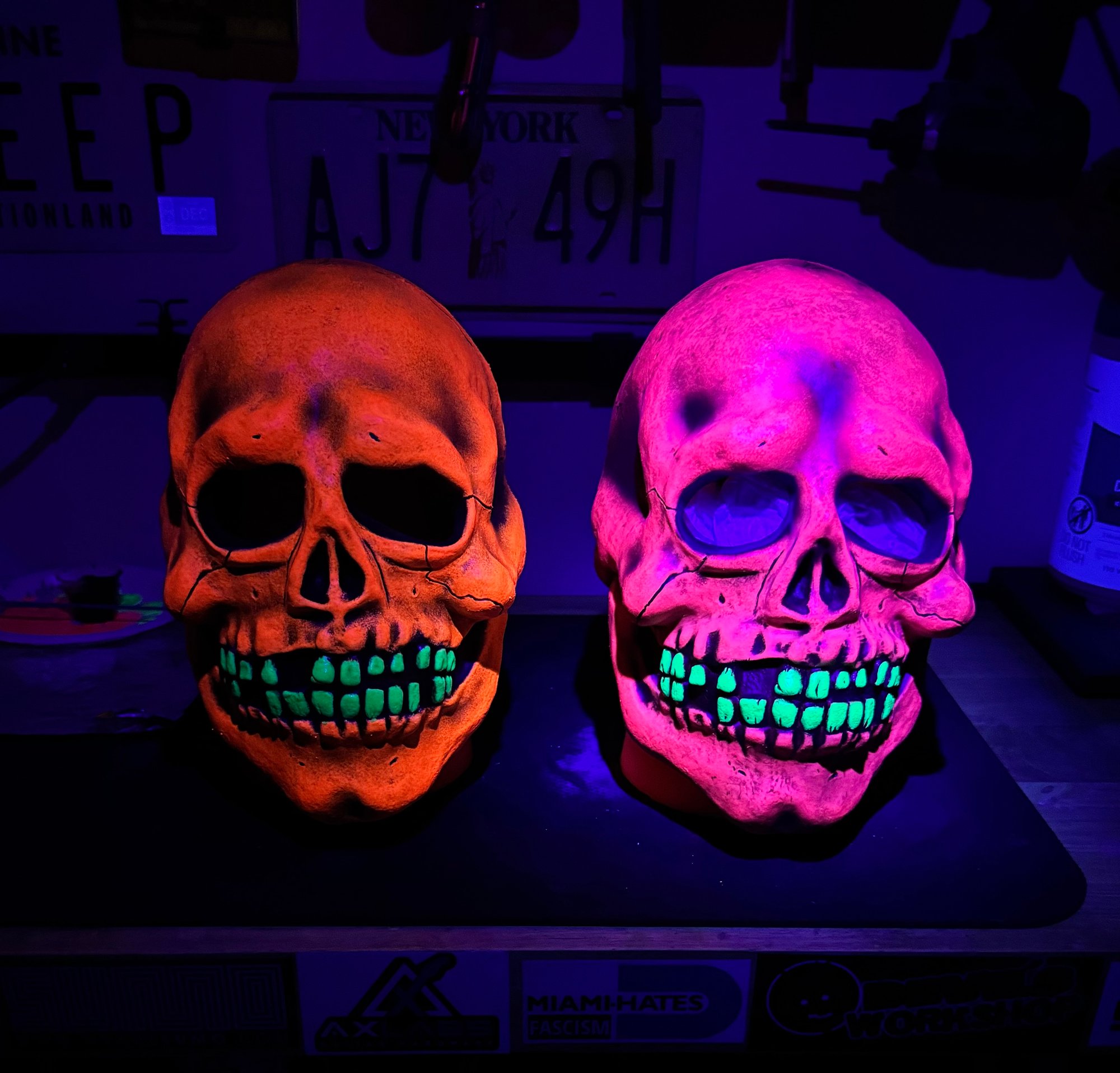 Masks are painted up in high quality latex mask paint that are UV reactive