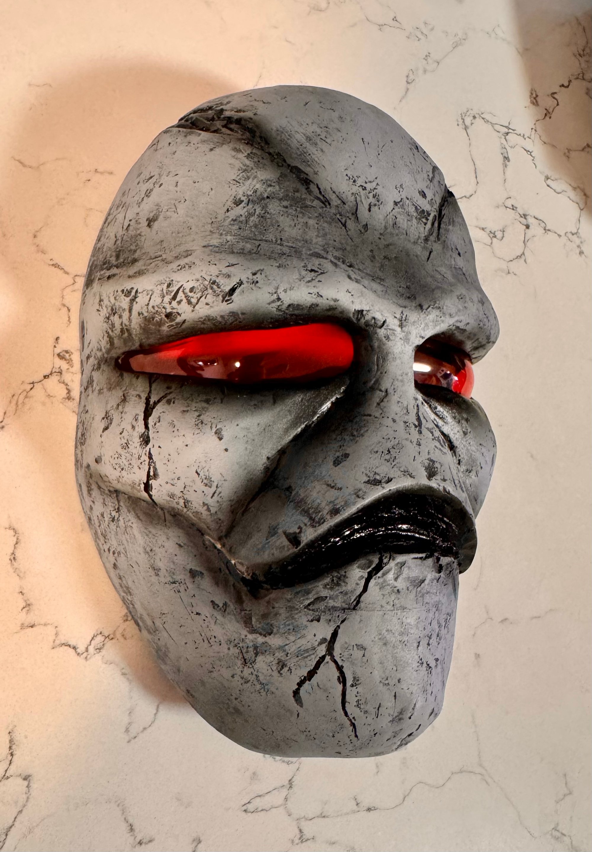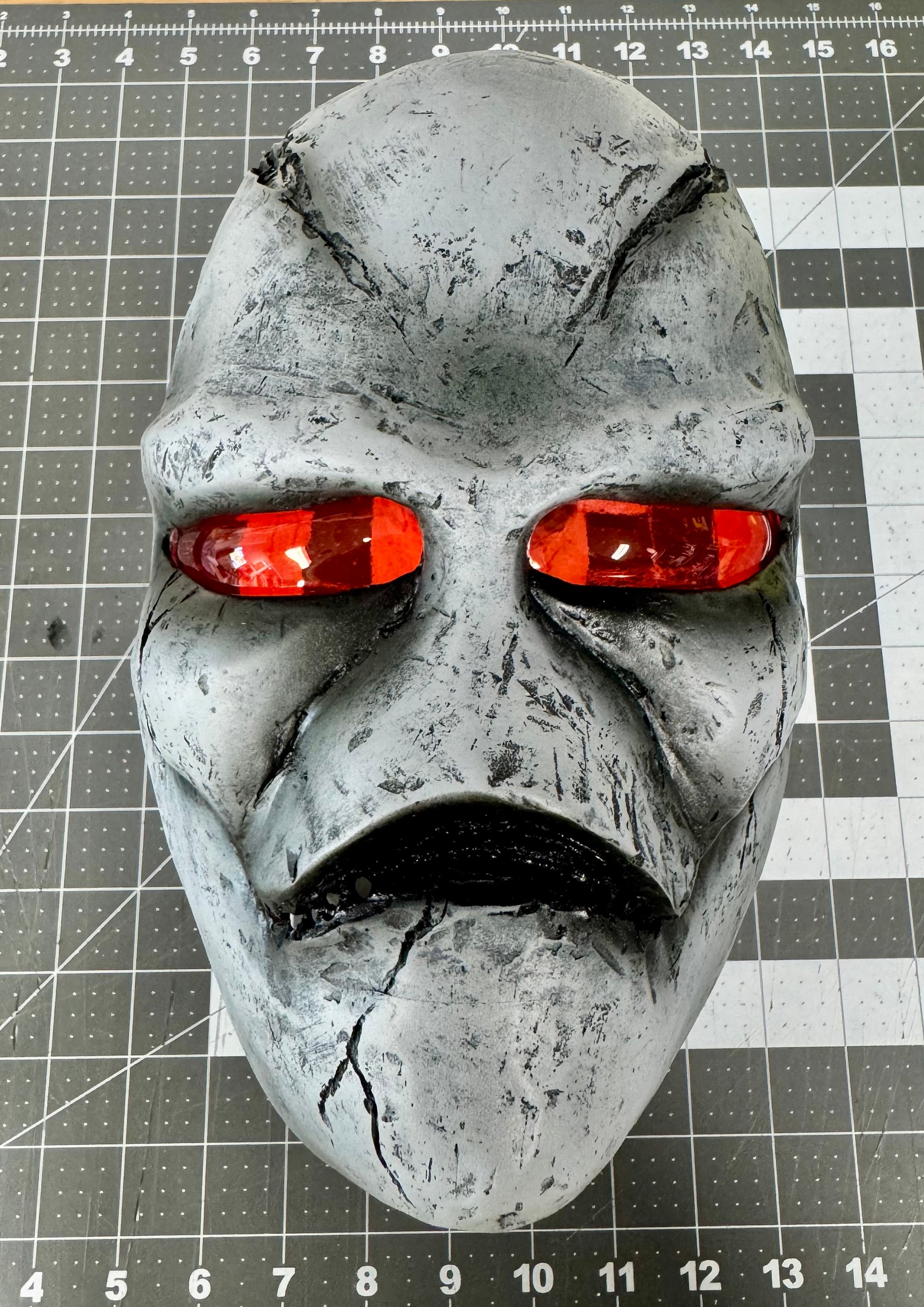 - Stunt eyes (holes are drilled out for vision and painted red, just like they were made for the stunt actors)